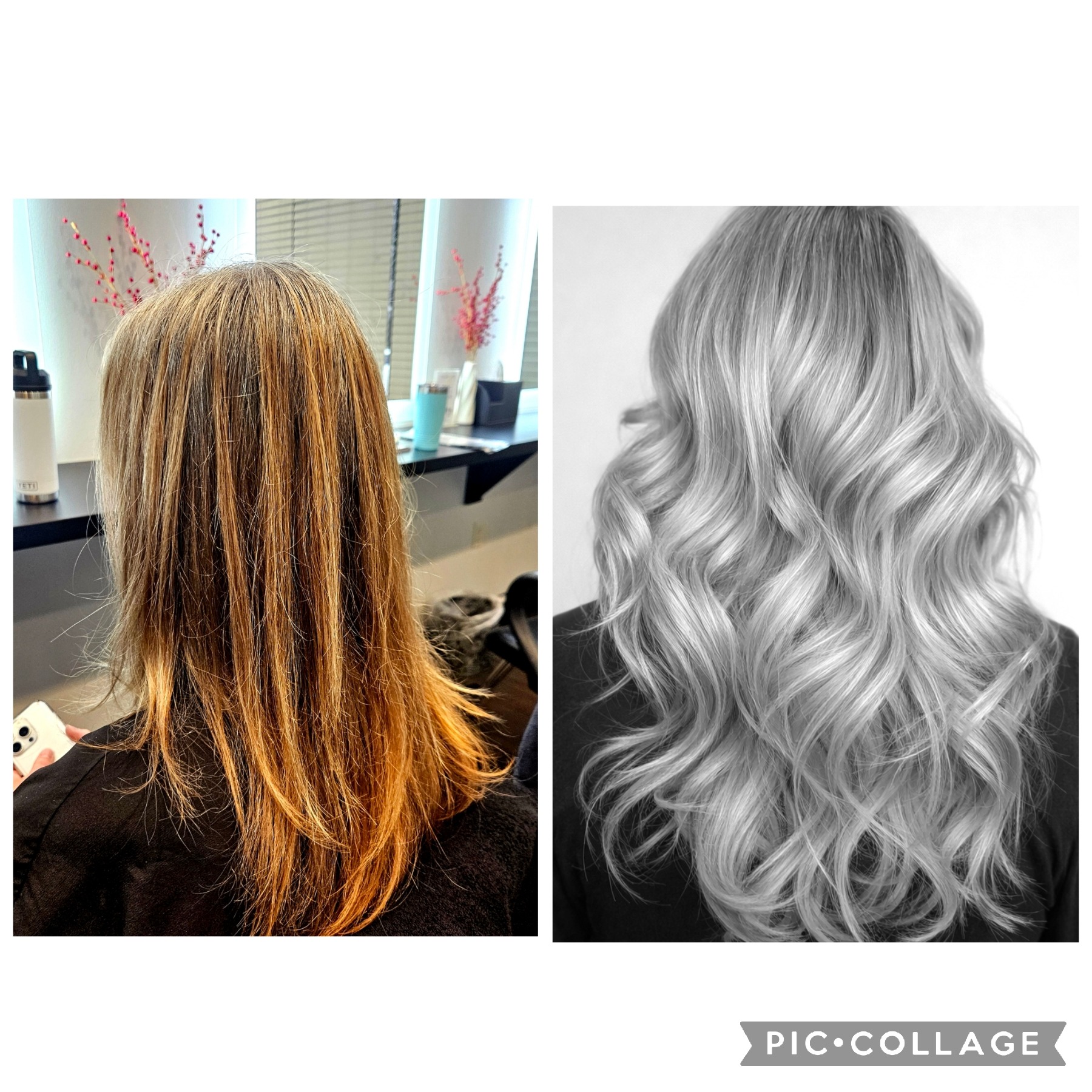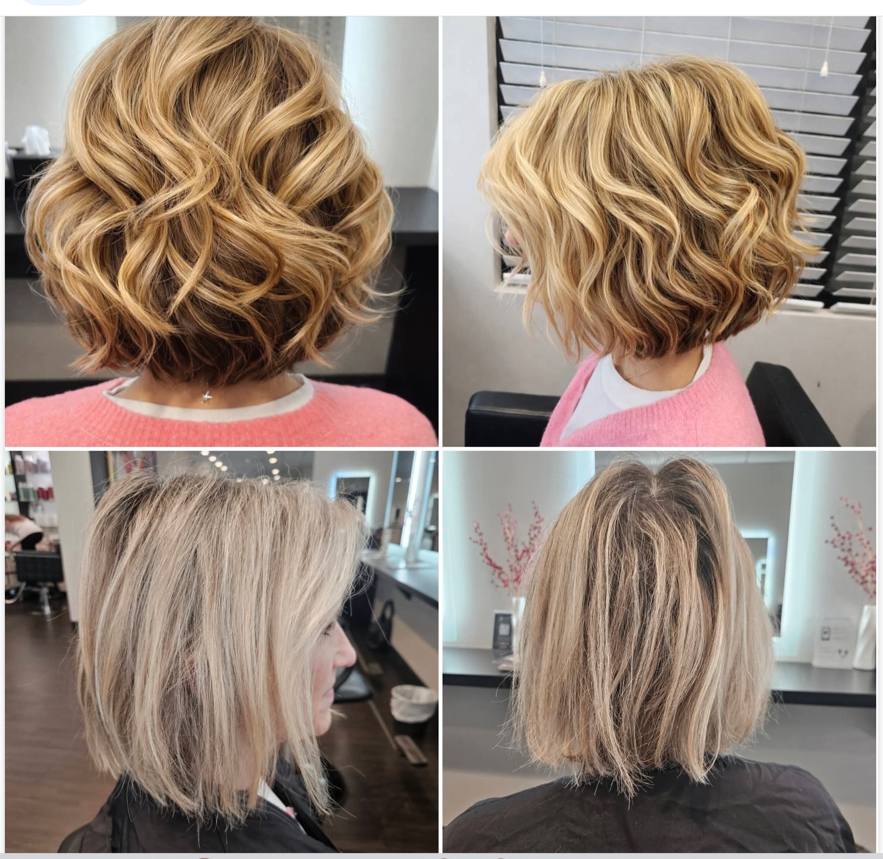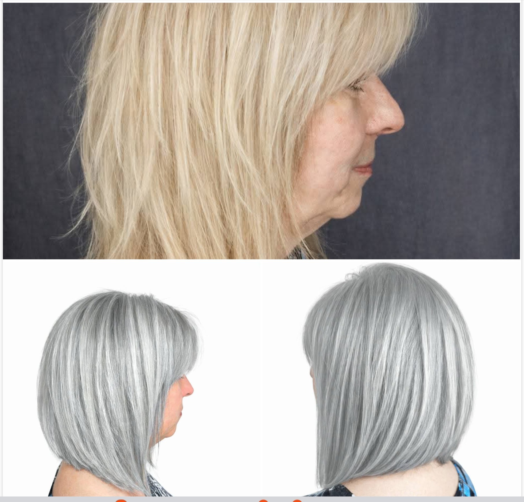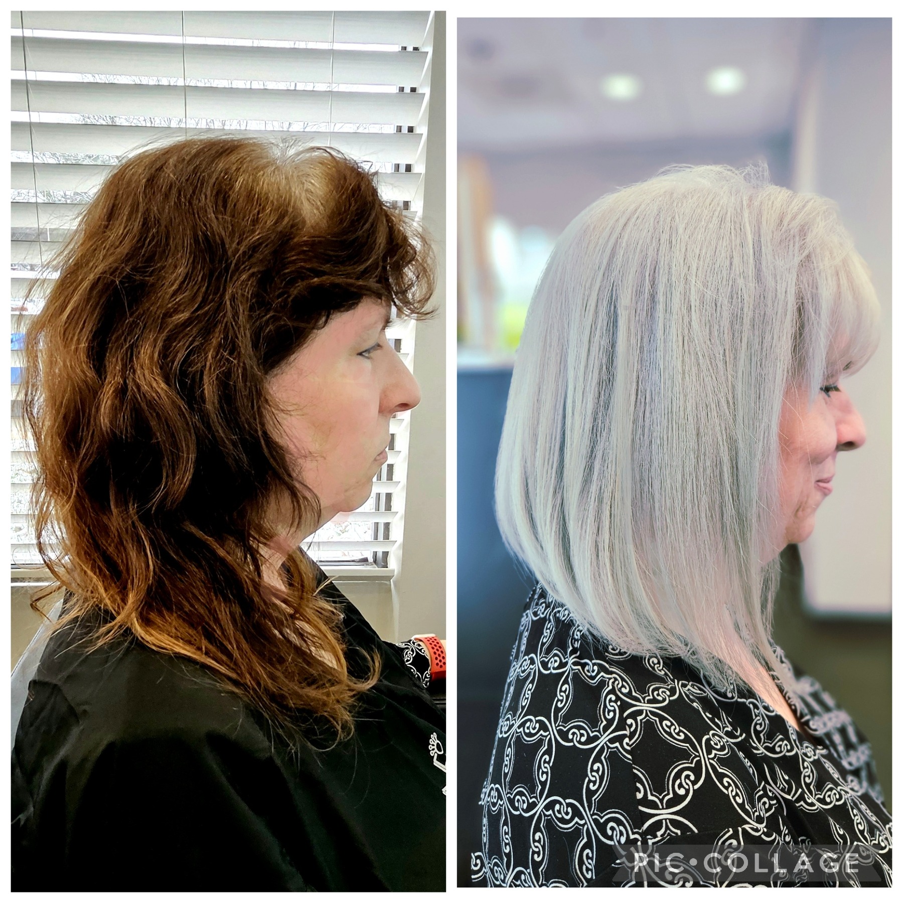 Pale thin bob transformed into warm full angled bob