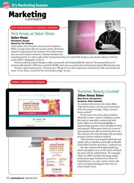 Woodstock, GeorgiaSalongloss.bizOwners: Tim TimmonsSalon style: Metropolitan, Contemporary, ChicSquare footage: 2000Stations: 13Treatment Rooms: 1Equipment: Minerva, Standish Salon Goods, Array MarketingFurniture: Minerva, Salon CA, Design XTotal design investment: $75,000Retail lines: Phyto, ArrojoColor line: PhytoDesign by: Gene FinaArchitects: Al Causey, The Village StudeioPhotography: Kate Keleva, Sitting Pretty Photography Owners’ Comments:“Our Scalp Analysis Center literally gets to the ro...